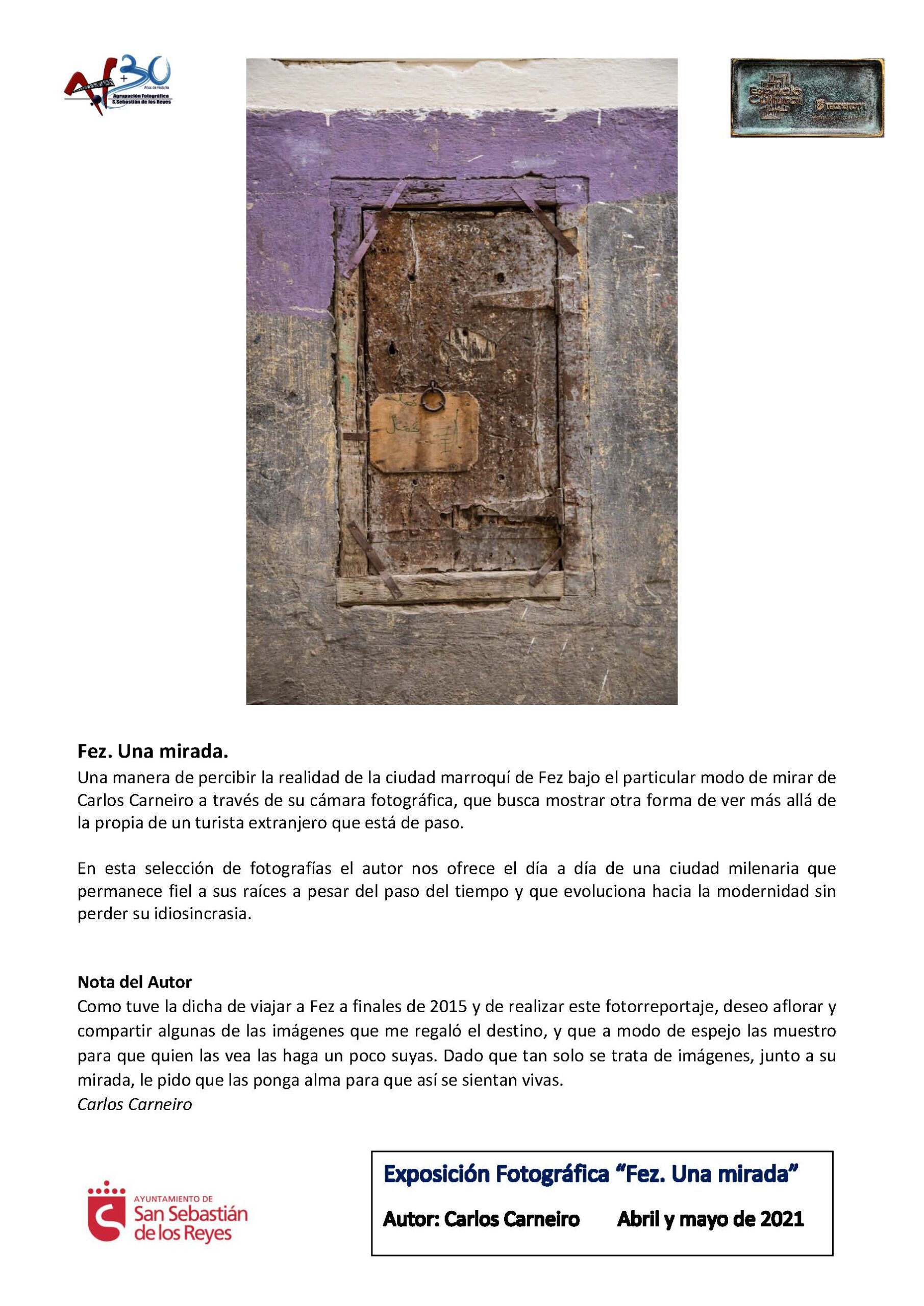 La Exposición “Fez. Una mirada”, de Carlos Carneiro, inaugura el Convenio AFSSR-Tecnatom